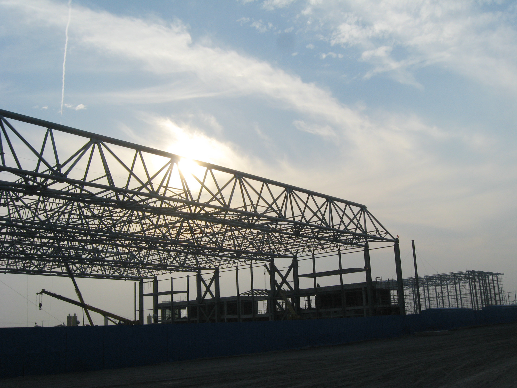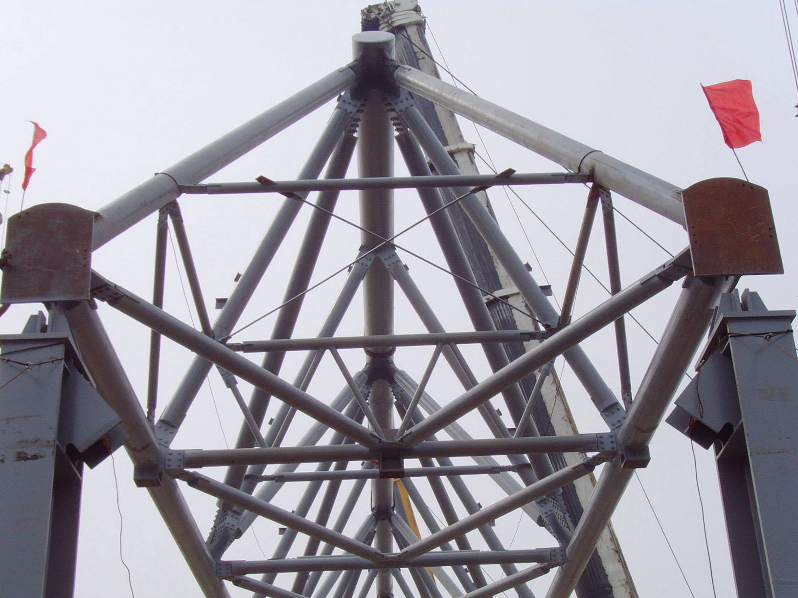 The Rear Hangar is a steel tube truss structure with full-bolt joints, with a span of 96 meters.