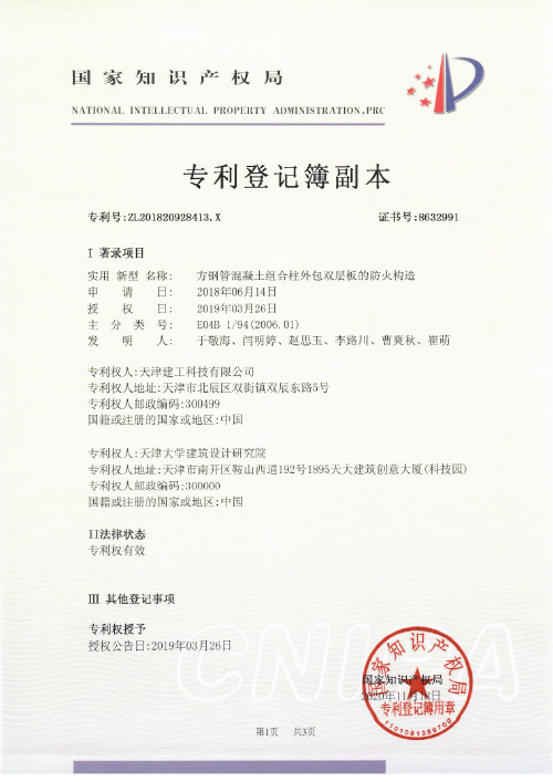 實用新型名稱:方鋼管混凝土組合柱外包雙層板的防火構造
