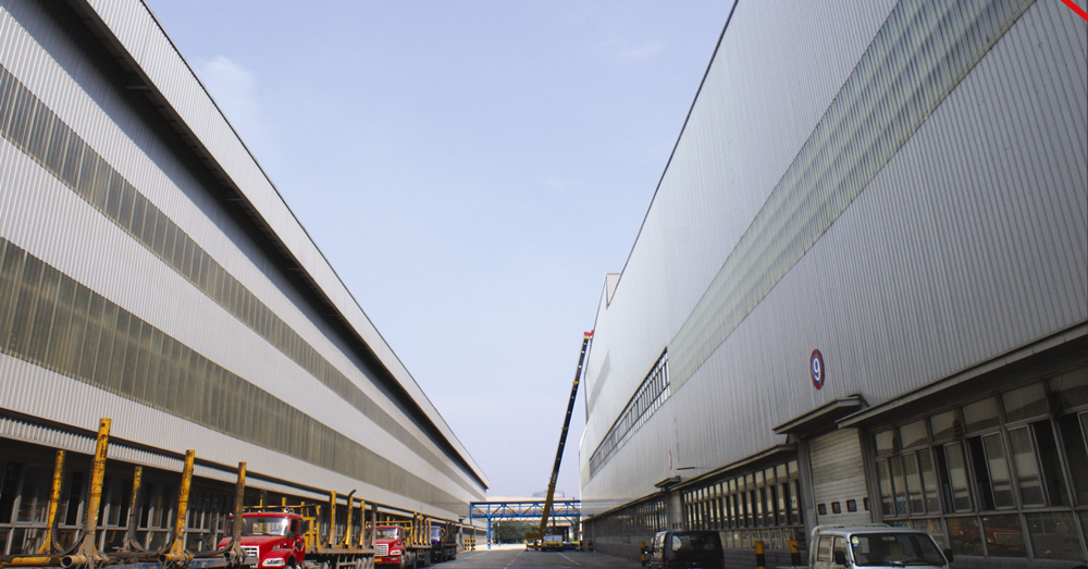 建筑面積57000平方米,鋼結(jié)構(gòu)工程量共計10300噸,為五連跨單層重型工業(yè)廠房,最 大 跨度39米,最 大 單體構(gòu)件52噸、42米長。
