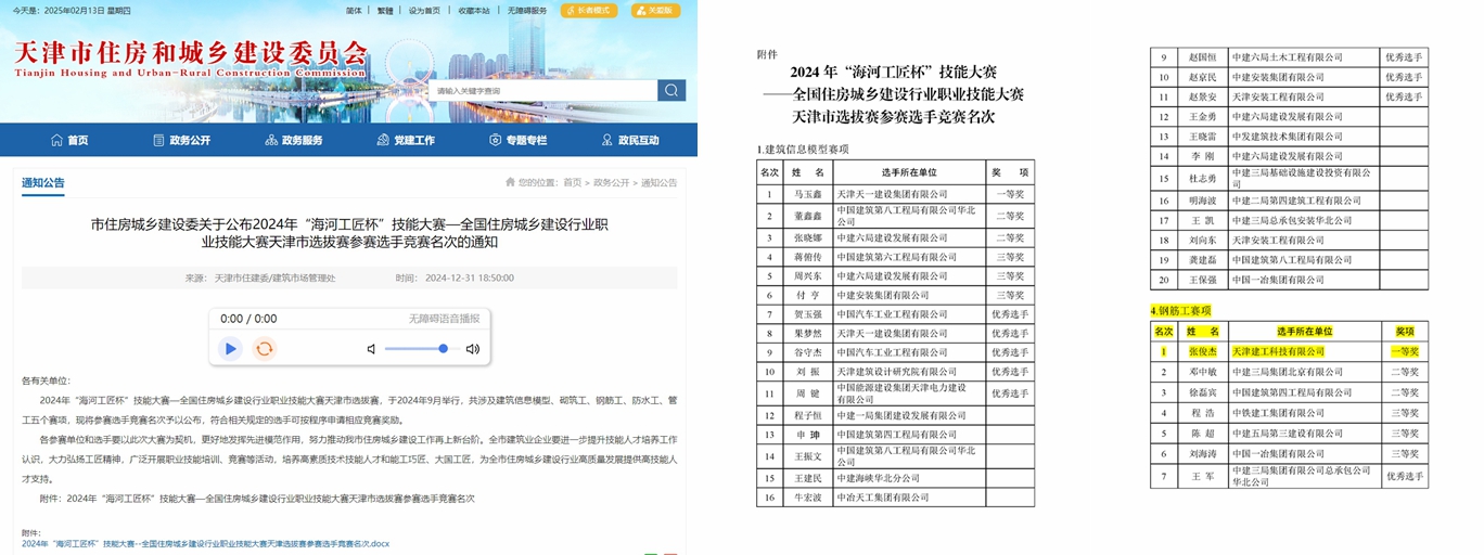 科技賦能 匠心筑夢 | 科技公司參賽選手獲“海河工匠杯”鋼筋工賽項一等獎