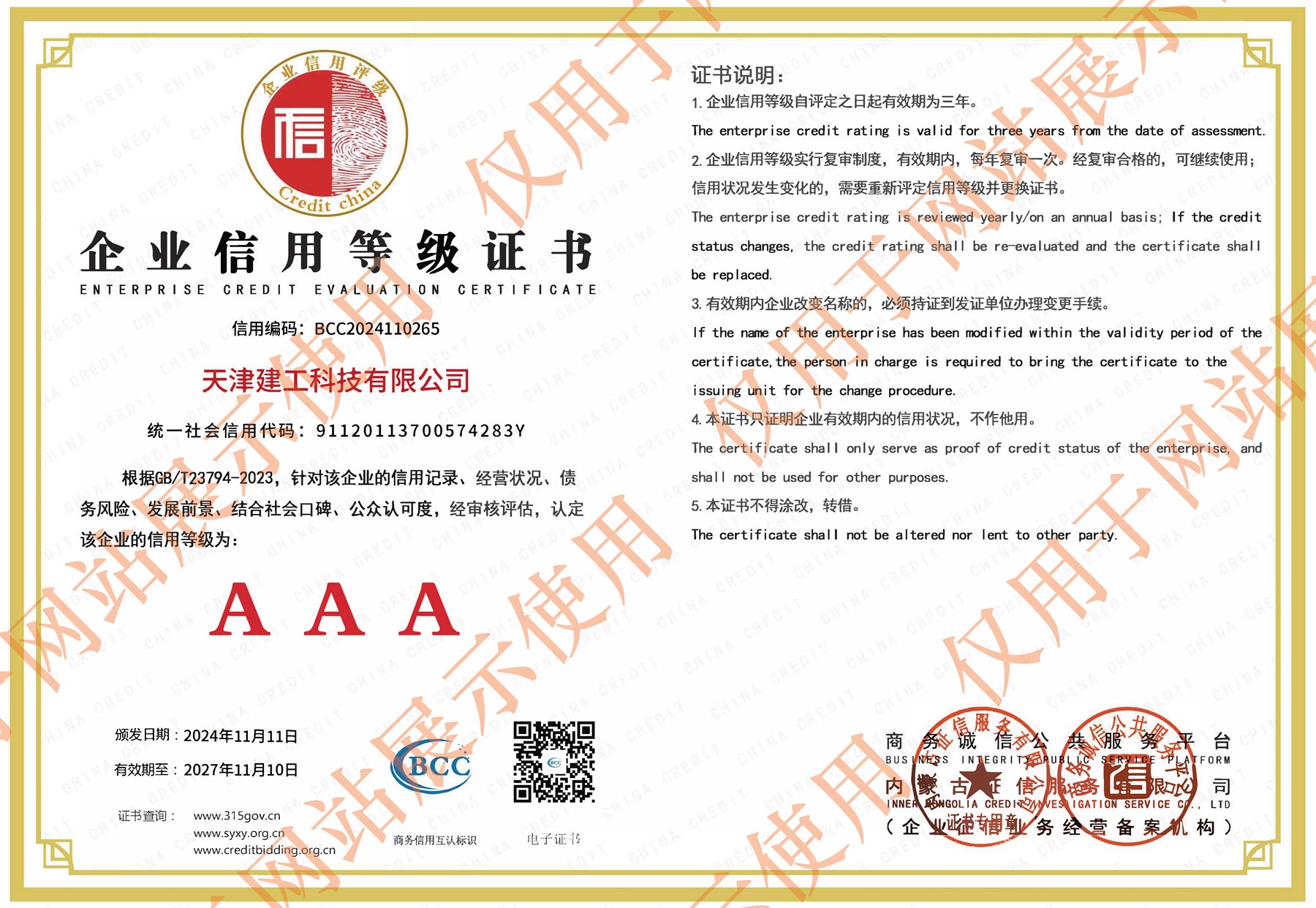 企業信用等級證書AAA