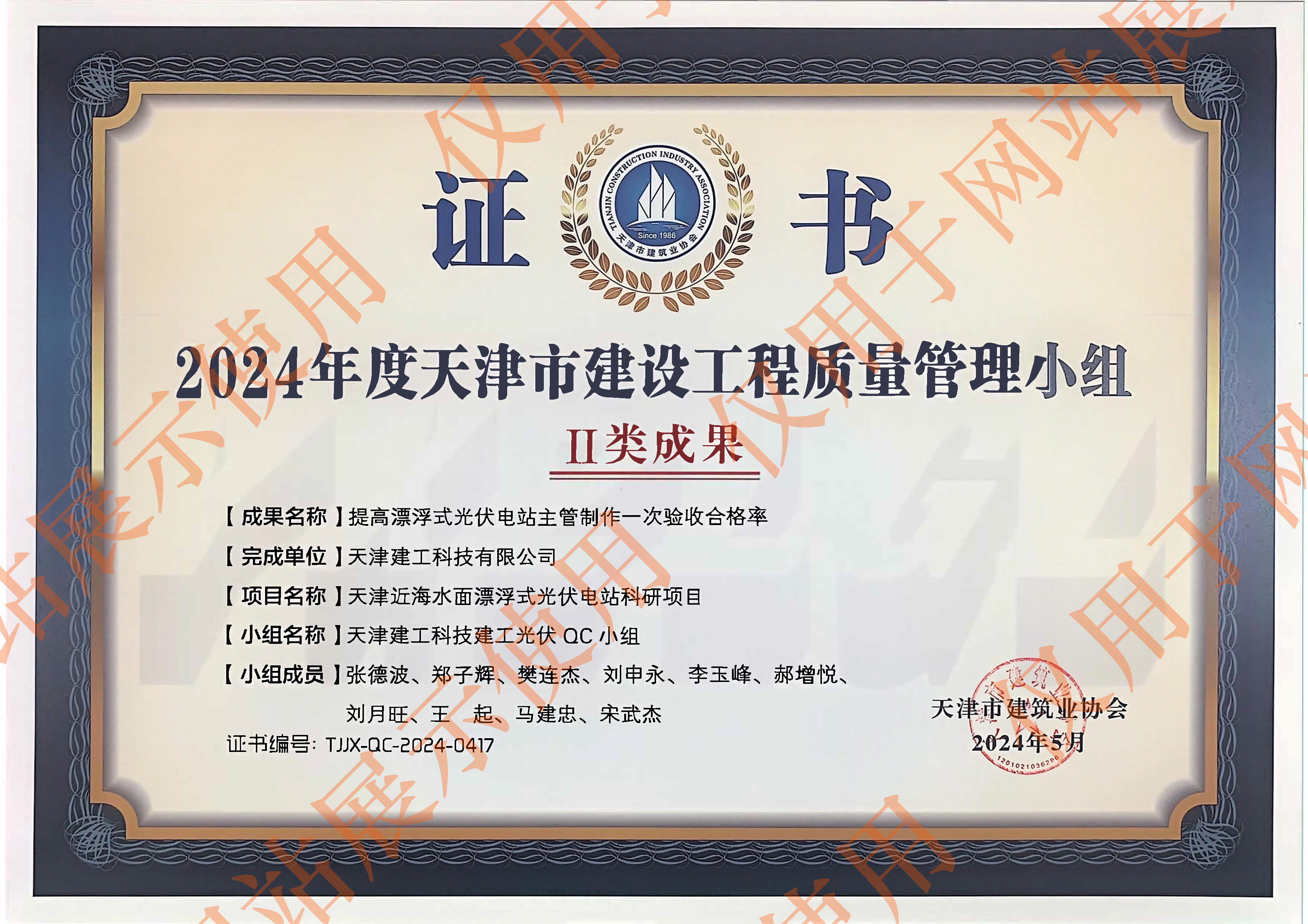 2024年度天津市建設工程質量管理小組Ⅱ類成果_提高漂浮式光伏電站主管制作一次驗收合格率