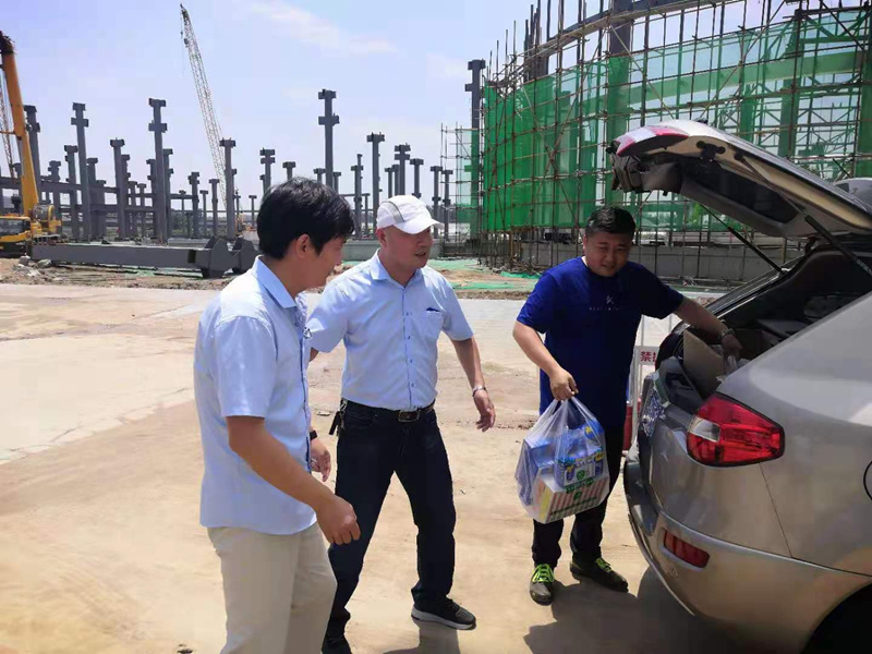 為確保暑期施工安全,維護一線員工身體健康,公司工會、安全生產管理部組成聯合工作小組,親臨商河施工現場,進行汛期、暑期安全大檢查,并對一線施工人員進行了暑期送清涼的慰問,充分體現了建工科技對基礎員工的關懷,極大的鼓舞了員工干勁。