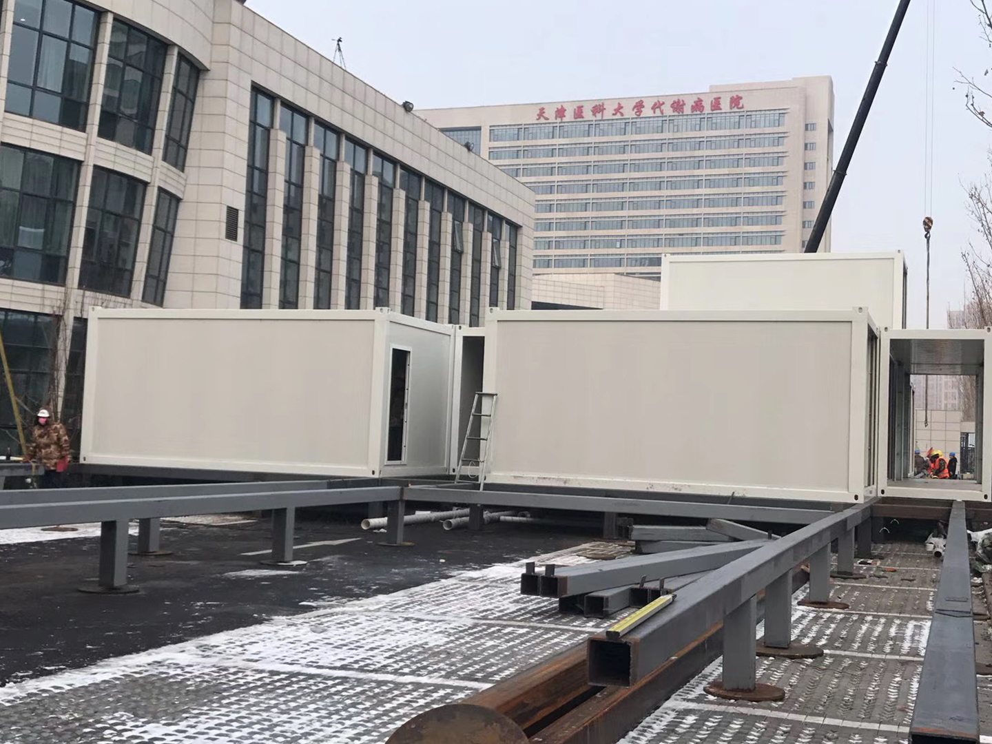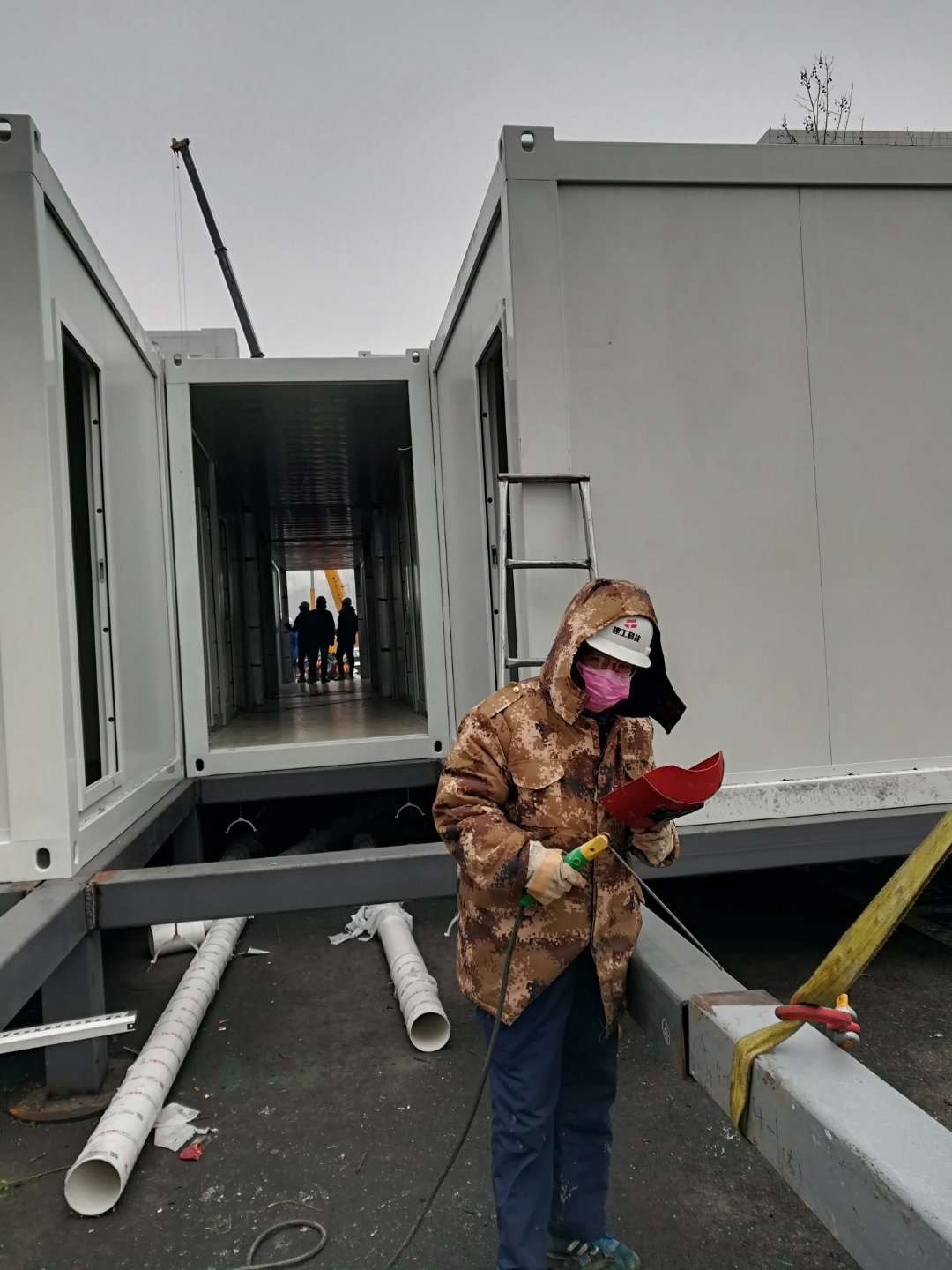 一場突如其來的疫情,打亂了庚子年新春的腳步。2月3日我們接到搶建天津醫科大學朱憲彝紀念醫院臨時發熱門診工程任務。建工科技班子成員快速響應召開緊急會議商討搶建方案。我們利用公司技術優勢,從接到任務僅用5小時完成圖紙深化工作,與此同時安排施工組織準備。在時間緊、人員物料都處于缺乏狀態下,40余名管理干部親自上陣,在制作及施工一線大家各自發揮自身所長,從構件焊接到拼裝涂刷,從卸車倒料到搬運吊裝,每一道工序大家都親力親為。這些人中,大部分參建過03年抗擊非典海河醫院的搶建工程,曾被天津市委授予青年突擊隊稱號,十七年后他們又奮戰在馳援防控新冠病毒建設一線。材料短缺,上游企業還處于放假狀態,疫情防控重于泰山,我們抽調年前各在施工程項目的備料,先確保馳援工程,讓我們在第一時間備齊了建設所需的各類建材,并于2月4日運至公司制作車間開始連夜加工制作。
